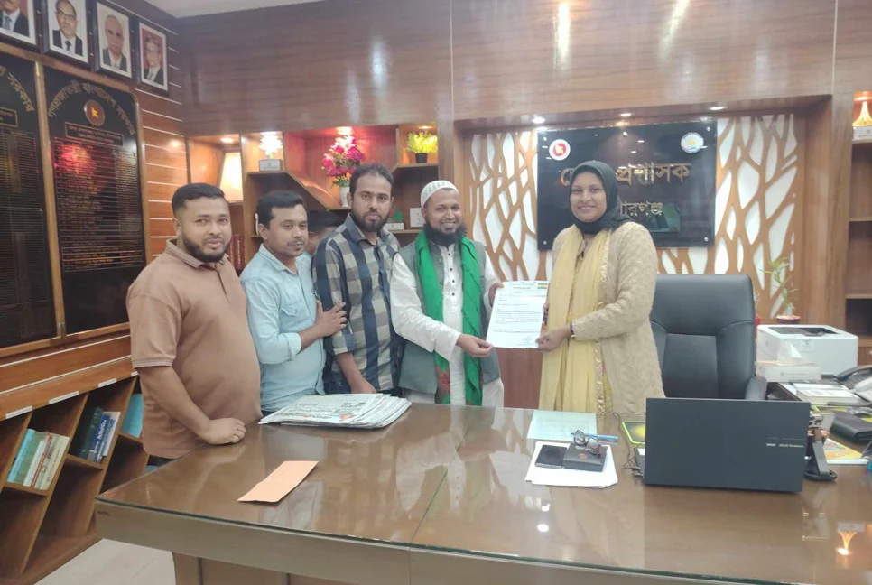 কিশোরগঞ্জ-ঢাকা রুটে বাস ভাড়া কমানোর দাবিতে ডিসিকে স্মারকলিপি